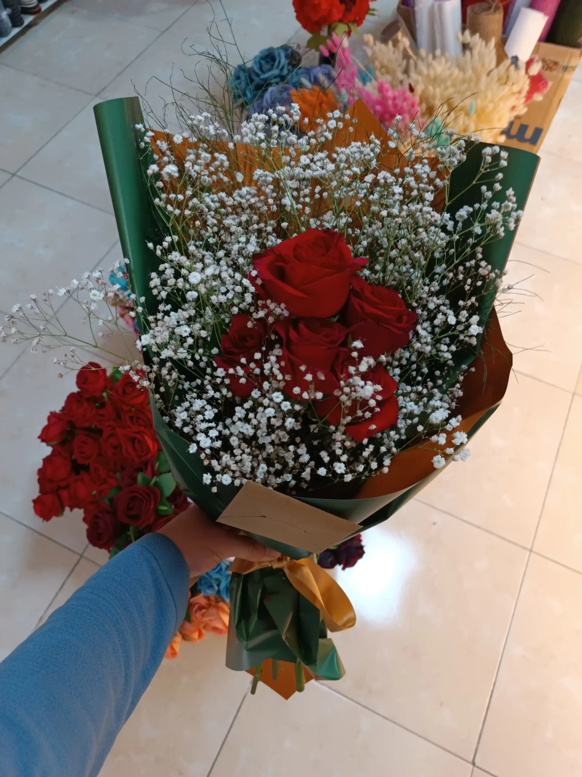 Kırmızı tonlarında güllerle tasarlanmış bu zarif aranjman, sade şıklığın temsilcisidir.