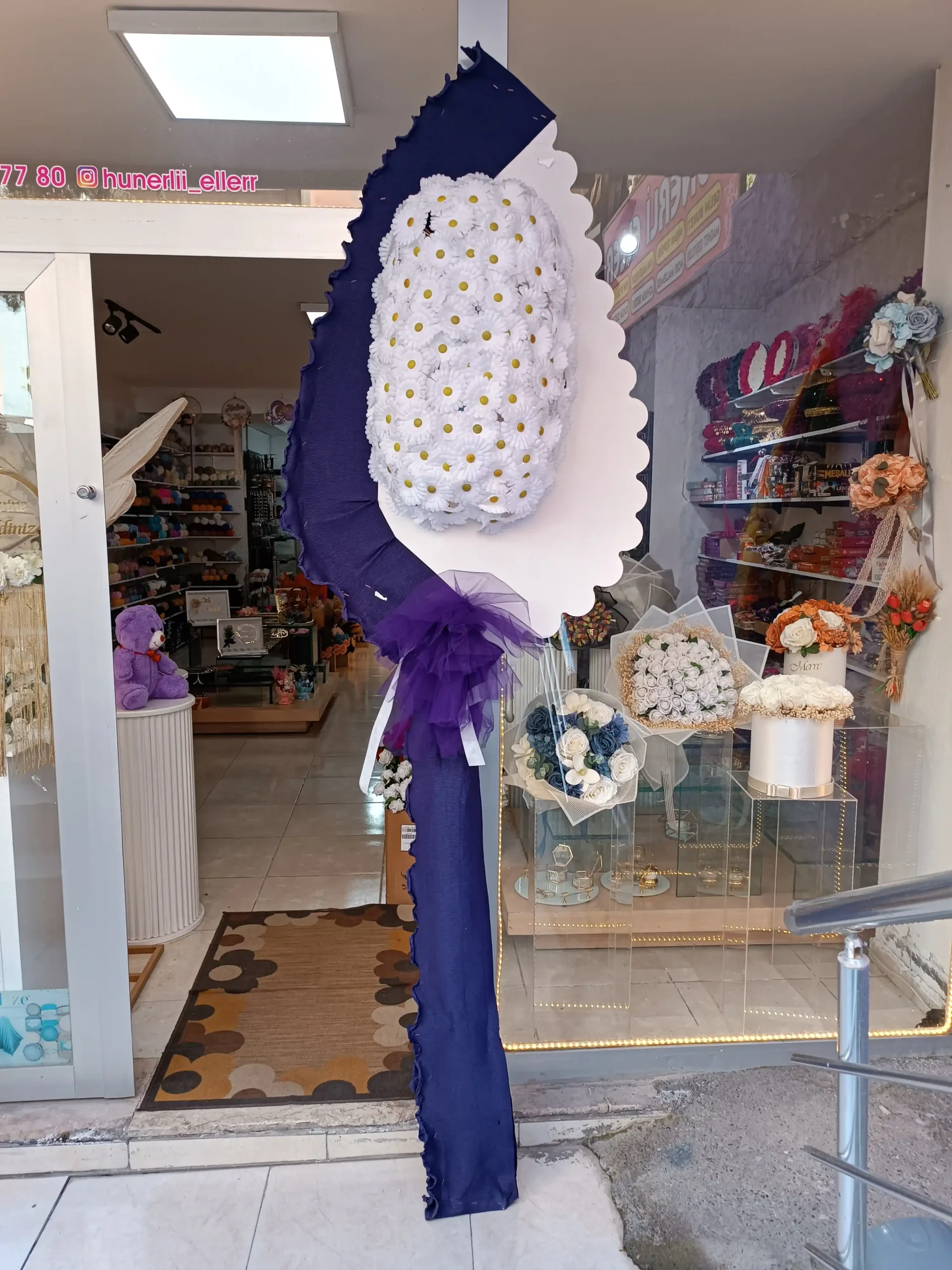 Mevsimin taze ve saf beyaz papatyalarıyla hazırlanmış bu çelenk, doğal güzelliği ve gösterişli duruşuyla öne çıkar. Canlı ve ferah bir atmosfer sunan tasarım, özel günlerin anlamını ve zarafetini yansıtmak için ideal bir seçenektir. Doğal dokunuşlarıyla her mekâna şıklık katar.